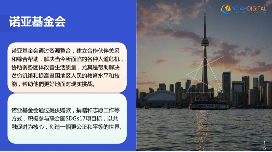 The global Noah Foundation inherits the century-old Canadian high-level industry-university-research model, seeking support and funding for strong and sustainable education and social demand training projects, focusing on advanced professional education for social adults, from university industry-university-research education and on-the-job programs, Expand the development direction of educational integration, industry-university-research research, and enter the value system of high-level adult education.
